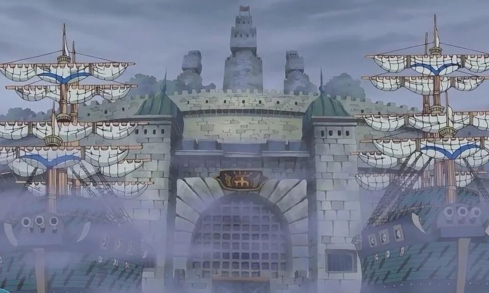 Este edificio es una torre subacuática impenetrable hecha de una combinación de la piedra y los metales más duros, entre ellos la piedra marina, una sustancia que puede anular los poderes otorgados por las frutas del diablo.