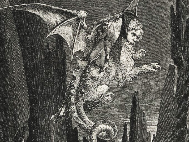 En La divina comedia nos encontramos también con bestias mitológicas cómo Gerión, una mantícora que transporta a Dante y al poeta Virgilio a través del infierno.