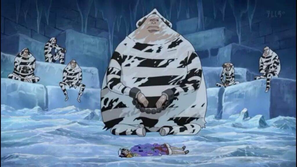 El quinto nivel de Impel Down es conocido como El infierno helado y se trata de un enorme congelador donde los reclusos mueren por congelación. Este nivel similar al noveno círculo del Infierno de Dante, donde se encuentra el terrorífico lago Cocito.